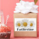 Three white daisies with a template for custom name in very dark grey on white background.