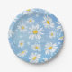 A lovely paper plate with white daisies on a blue watercolor look background. Plate also available with white centre.