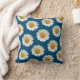 White Daisies Pattern on Ocean Blue Throw Pillow