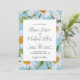 Pretty watercolor white daisy frame surrounding elegant script is perfect for your spring and summer wedding. Blue background brings out the pretty wildflowers. Just lovely.