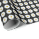 White Daisy Floral Pattern on Black Wrapping Paper