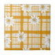 White Daisy Floral Pattern on Yellow Gingham Tile