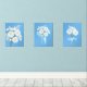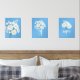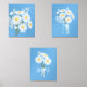 White Daisy Flowers Monogram Blue Set of 3