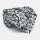White Daisy Pattern on Dark Green Background Tie
