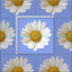 A pattern of white daisies on light blue background.