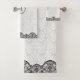Modern white floral damask pattern and black floral lace on them bottom. Optional monogram