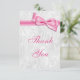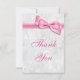 White Damask and Pink Faux Bow Thank You Card
