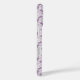This pretty iPhone case features a feminine design with a lacy white damask pattern over a light purple or lavender background. There is a monogrammed initial as well as a custom name.
