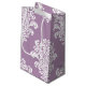 A lovely white floral damask pattern shown here with a lavender background. You may change the background colour to the colour of your choice by choosing another colour from the background selections. This gift bag is a versatile choice for weddings, birthdays, graduations and more.