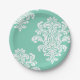 White Damask on Aqua Pattern Paper Plate