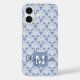 White Damask on Blue Grey Monogram & Name Pretty Case-Mate iPhone Case