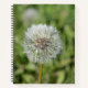 White dandelion flower on fresh dark green background. Close-up view of dandelion
