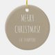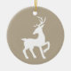 White Deer On Beige & Custom Text On The Back Ceramic Ornament