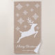 White Deer Shape On Beige With Snowflakes & Text Beach Towel
