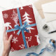 Modern and festive white deer and trees on a red background