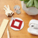 A bold geometric pattern with a white diamond in the centre surrounded by a red diamond outline that is flanked by 4 white triangles in the corners.