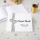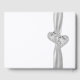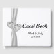 Elegant diamond hearts with a white ribbon decorate this guestbook. Wedding guest books are fun for both the couple and their celebrants. Invite attendees to leave you well-wishes at your reception, and you're guaranteed to have a keepsake to look back on for years to come. Plus, your guests will get to leave their mark on your event, not to mention put in writing whatever they didn't have a chance to express in person on the big day. Personalize the book by changing the text in the fields provided. You can change font style, size, and colour.