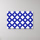 A bold, geometric pattern of large and small white diamonds on a navy background. The dark blue forms a lattice which separates the diamond shapes.
