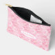 Cute pretty floral pouch style bag. Original white dianthus carnations patterned bag on a pretty pink background. Customize with the short name of your choice. Example reads Leanne. This pattern is stylized from a photo of a piece of jewelery I made from modelling clay. This original pattern is designed by Sarah Trett for www.mylittleeden.com