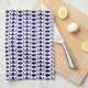 White Dog Bone Herringbone Pattern Navy Blue Kitchen Towel