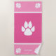 White Dog Paws On Pink With Custom Name Beach Towel