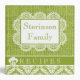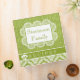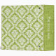 Romantic white rectangle doily with lace and lime green coloured burlap recipe binder that features a white rectangular laced doily, white damask pattern and a green stripe with white cutlery and chef cap on green coloured burlap. Text in green and white. Note that lace and burlap are all “printed on” and not real fabric. This elegant, sophisticated and romantic design with a rustic essence is fully customizable and will make a lovely cooking recipe book.