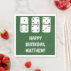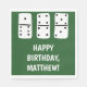 Add a fun touch to your next party with personalized paper napkins. These custom party supplies are perfect for anyone who loves to play dominoes with simple, hand-drawn style illustrations of white dominoes with black dots set against a green background and your custom message below the graphic in bold white lettering.