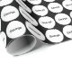 A wrapping paper designed with a white dot pattern on a black background and name. Customize the wrapping paper with your special name or text among other options.