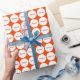 A wrapping paper designed with a white dot pattern on a bright orange background and name. Customize the wrapping paper with your special name or text among other options.