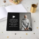 Dove themed black funeral guest book personalized with a photo and your loved one's name and years living in elegant white fonts against a black background. Forever in our hearts funeral guest book with a dove and your loved one's photo.