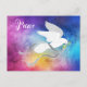 Send Someone Special this "One of a Kind" White Dove Postcard. It Features a Serene White Dove Flying Among Colourful Clouds, Carrying an Olive Branch with Flowing Silver Ribbons...Spreading Peace!
