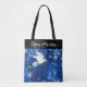 Personalize this Unique"One of a Kind" White Dove Christmas Tote Bag! It Features a White Christmas Dove Carrying an Olive Branch with Flowing Red & Green Ribbons saying...Merry Christmas!