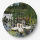 White ducks, lily pads, cattails, lake shore paper plate