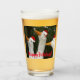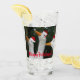 Drinking glass for cold beverages during the holiday season that features a whimsical image of funny, white ducks wearing red Santa hats. A fun, animal design for the holidays!