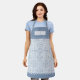 White and dusty blue damask pattern with burgundy scalloped borders apron. On the upper and the bottom parts of the apron there are dusty blue bands with scalloped edges. You can personalize it with your name.