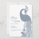 White dusty blue peacock elegant Save the Date Invitation