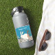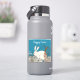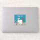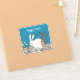 This vinyl sticker is a pretty white fluffy rabbit sitting on a grey ground among white and orange flowers on a blue background. Customize the Happy Easter text with the template.