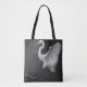 A tote bag featuring a white egret in a soft monochrome style on a dark background. Clean, elegant, and easy to carry, this design works well for everyday use, errands, books, and nature-inspired fashion.