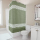 White elegant luxury geometric pattern on sage green background. Sage green shower curtain with white pattern. Elegant, luxury, minimalistic and strict design in trendy colours. Eastern ancient ornament on green background. Mediterranean and greek motives. You can customize with your own colour of background (shown in sage green).