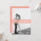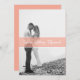 This modern elegant script photo wedding invitation with transparent salmon border.