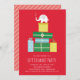 This is a white elephant gift exchange holiday party invitation featuring gifts and elephant illustration.