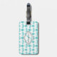 White Elephant Pattern Aqua Monogram Luggage Tag