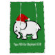 White Elephant with Santa Hat Design Gift Bag with your choice of background color and text.