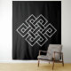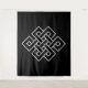 Tapestry with a white endless knot symbol on a black background. Customizable.