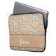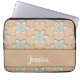 White engraved flowers on tan laptop sleeve