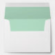 A White 5x7" envelope with a Mint Green Lining Inside.