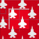White F-35 Lightning 2 fighter jets fly in formation across this red fabric that is great for all your craft projects, from flight suit bags to party shirts and beyond! **Change the background colour from red to any colour of your choice using the "Customize it" button!**