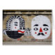 Urban Art in vienna austria at donaukanal - cute black and white face showing tongue to some abstract harlekin with a moustache and red nose