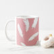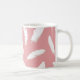 White feather print on medium soft shell pink - mixed media graphic design of white feathers, floating on a contrasting, coloured background