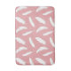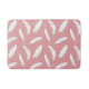Bathmat in a white feather print on soft shell pink - mixed media graphic design of white feathers, floating on a contrasting, coloured background